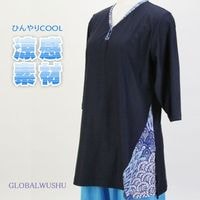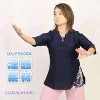 【sale】太極拳 ウェア【新商品】【更紗フロントタイプ】ブラック(柄レッド) 六分袖 Vネック 通常5,280円⇒4,620円